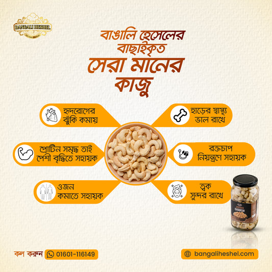 Cashew Nuts - Roasted & Salted (কাজু বাদাম - ঘি রোস্টেড, পিঙ্ক সল্টেড)